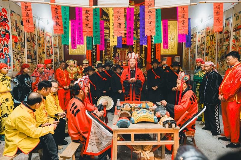 近日,在湖南省郴州市临武县水东镇油湾村,临武傩戏剧团开展临武傩戏(祭)民俗活动,祈福国泰民安,村民日子红火。
